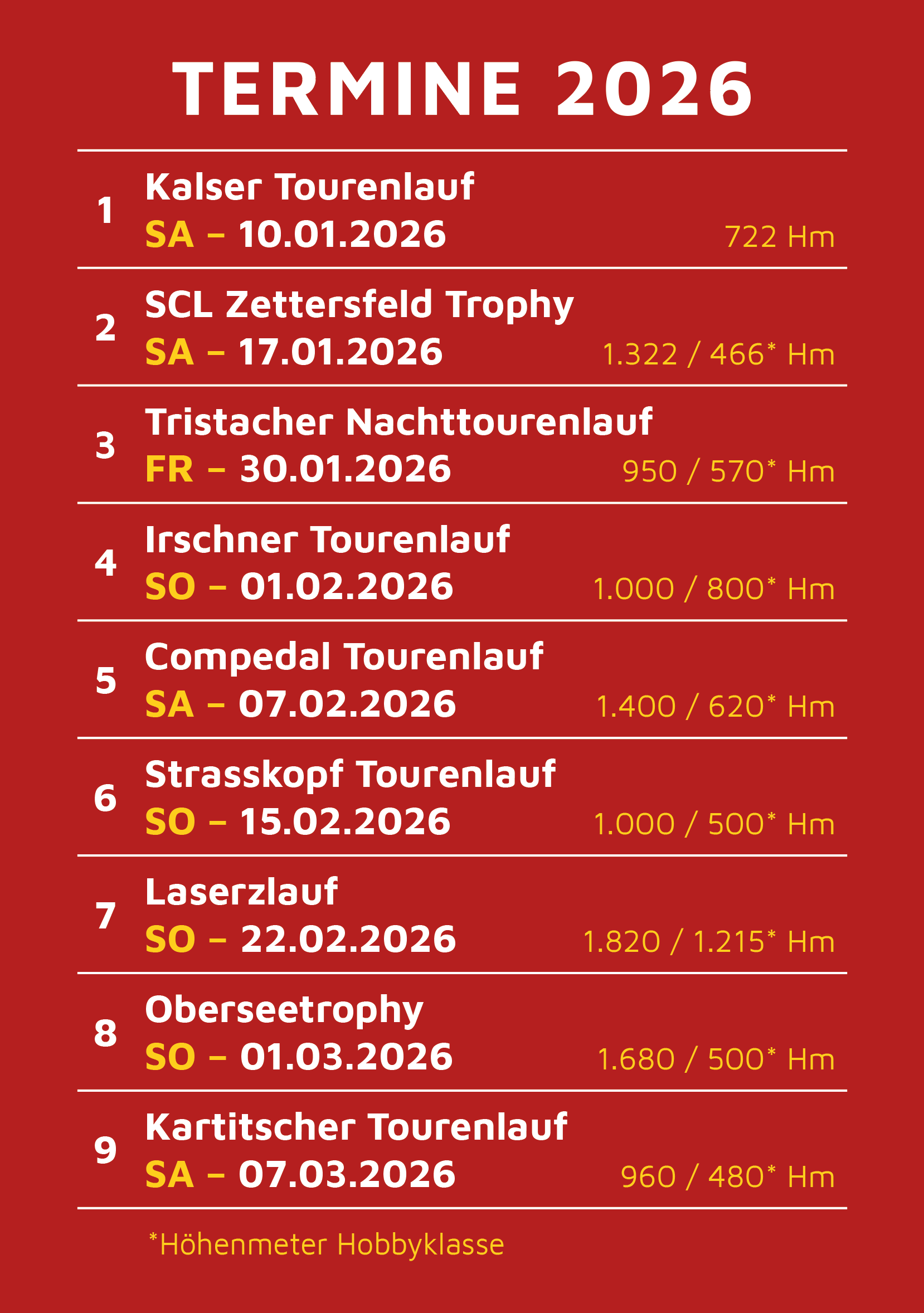 19. Tristacher Nachttourenlauf – FREITAG 30.01.2026